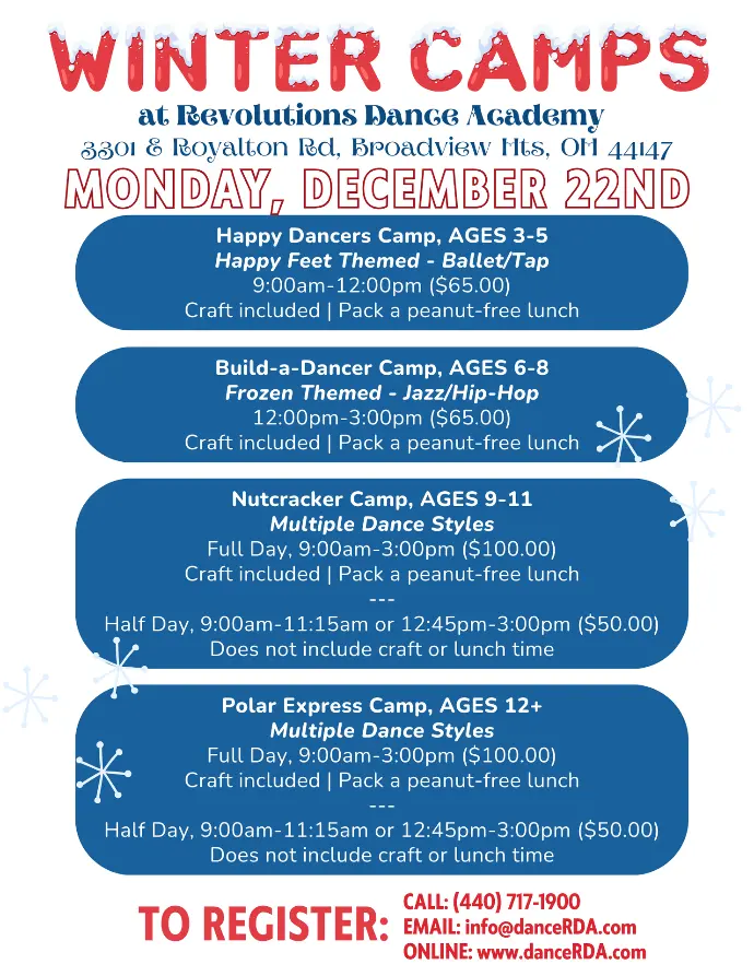 Join us for FOUR HOLIDAY THEMED Dance Camps on Monday, December 22nd